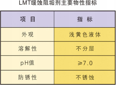 LMT緩蝕阻垢劑由防銹劑、緩蝕劑、阻垢劑、殺菌滅藻劑等有機酸鹽和無機酸鹽組成。外觀為淺色液體,有效成分約為30%,PH值≥7。