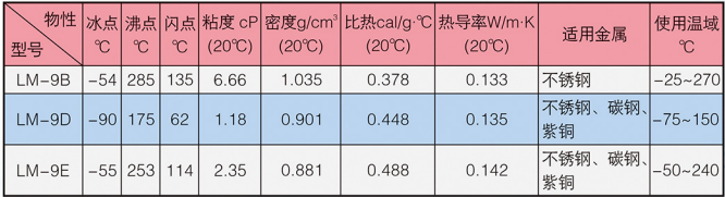 LM-9系列冰河冷媒由多官能團有機物改性而成,外觀為淺色液體,不溶于水,可燃。具有粘度低、揮發性小、防銹性好、化學性質穩定等特點。