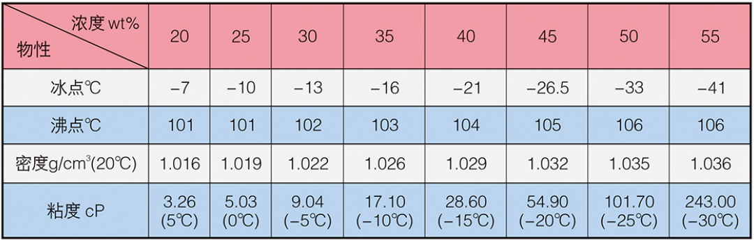 LM-4A型冰河冷媒由改性二元醇構(gòu)成,主要添加劑包括防腐蝕劑,防霉劑,增溶劑、水穩(wěn)劑等。外觀為淺色液體。安全無(wú)毒、無(wú)異味、不易揮發(fā)。20°C時(shí)密度為1.04g/cm³,比熱為0.56cal/g·°C,粘度為15.9mPa·s(cP),熱導(dǎo)率為0.21W/m·K。沸點(diǎn)高于130°C,冰點(diǎn)低于-50°C,閃點(diǎn)為100°C。