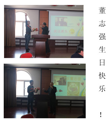 今天正好是我公司最年輕員工董志強的二十歲生日,公司綜合部獻上祝福,大家舉杯共祝董志強生日快樂!