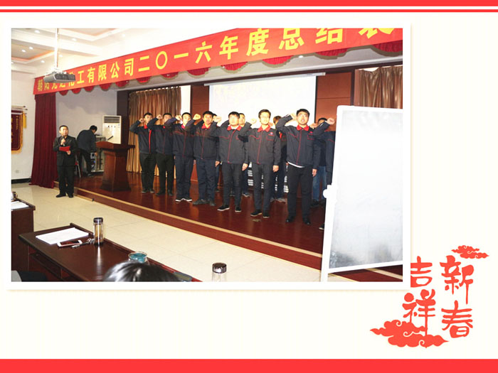 最后公司董事長白松泉做大會總結,回顧公司2016年的工作,給予了充分的肯定,解讀公司各項制度,激勵員工積發揮自己的特長,為公司,為人類文明貢獻力量!2016年是公司發展壯大的一年,公司新廠區正在建設中,各項工作取得了圓滿的成功,2017年的計劃和藍圖已經描繪,朝陽光達化工有限公司上下將精誠團結,齊心協力,銳意進取,為開創公司改革發展新局面而努力奮斗。